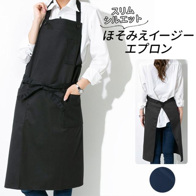 エプロン おしゃれ 通販 ナチュラル レディース メンズ 男女兼用 首かけタイプ ミドル丈 ブラック ネイビー 首掛け フリーサイズ サロン カフェ 保育士 カフェ 無地 ほそみえ イージー 前掛け ギフト プレゼント