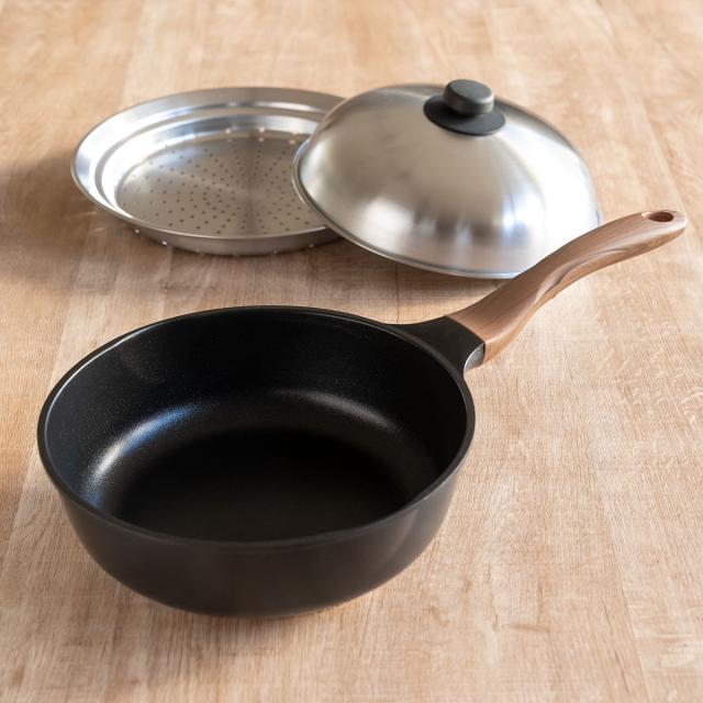 フライパン 24cm IH対応 深型 両口 蒸し台付き Nトーン エヌトーン ( ガス火対応 炒め鍋 いため鍋 金属ヘラOK ふっ素加工 フッ素加工 軽い 24センチ 深型フライパン 蒸し器 セット フライパン ih対応 フライパンセット)