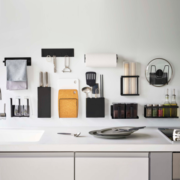 冷蔵庫やシンク・コンロ周り、調理台前などのマグネットが付く壁面に取り付けられるマグネットキッチンシリーズです。マグネット収納シリーズの中から必要なアイテムだけを選び、自由に組み合わせて自分だけのオリジナル収納を作ることができます。ペタッとマグネットで貼り付けるだけなので、位置の調節や移動も楽々。