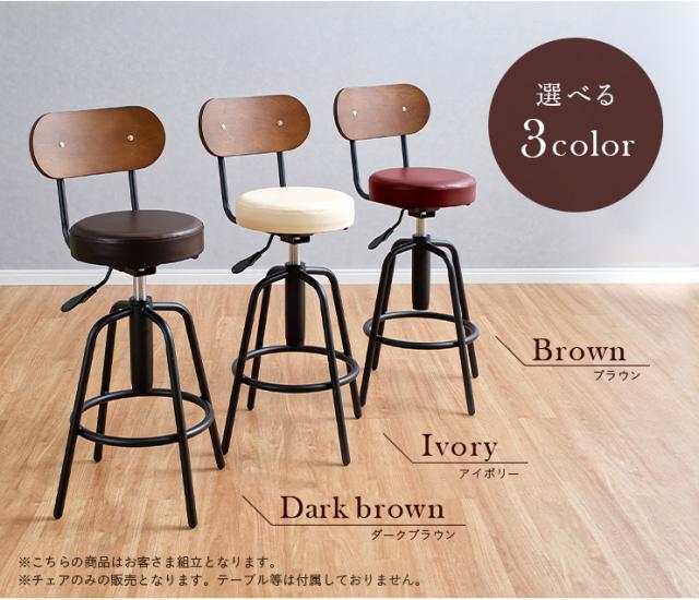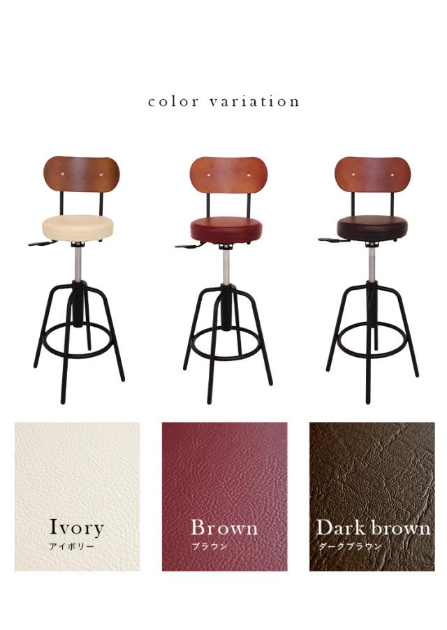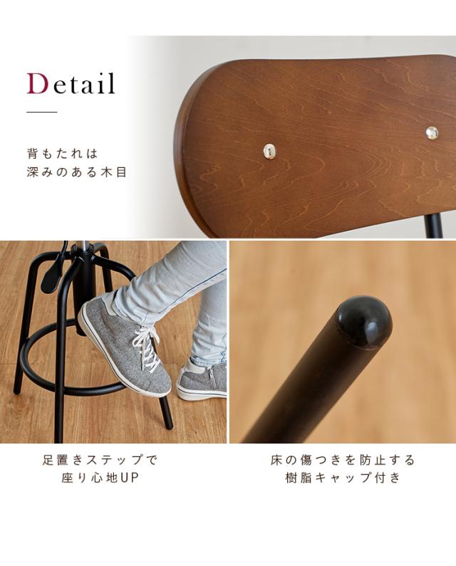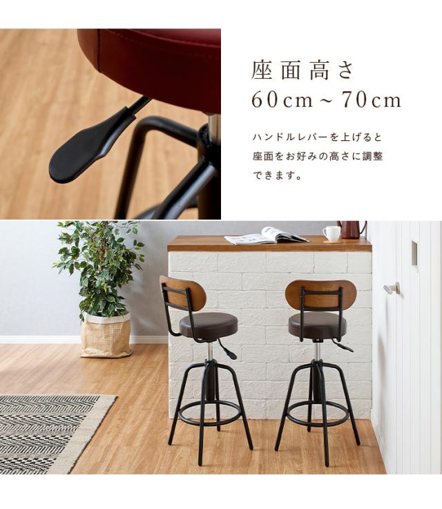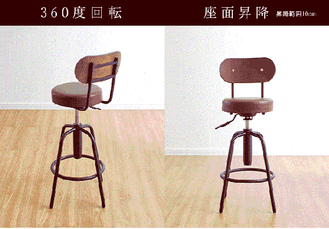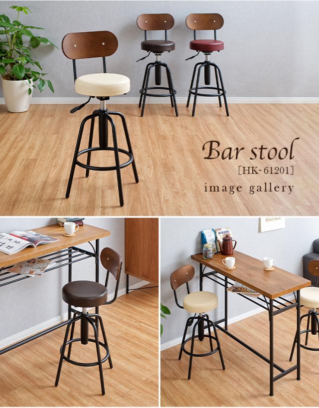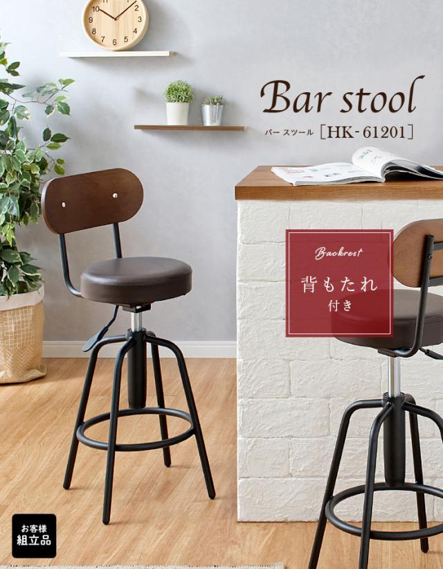【昇降機能付き/360度回転】バースツール HK-61201 3色対応 背もたれ付き バーチェア bar 昇降式 カウンターチェア スタンドチェア ハイチェア 1人 おしゃれ 木製 カウンター 椅子 高さ調節 ヴィンテージ