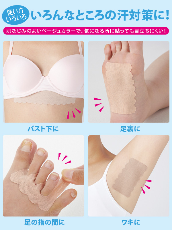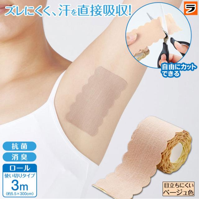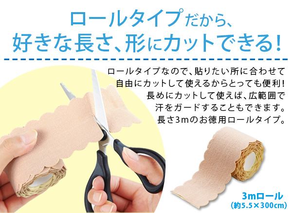 ※ バスト下、足指の間など、汗が気になる部位にも!目立ちにくいベージュ色。使い切りタイプ3m。