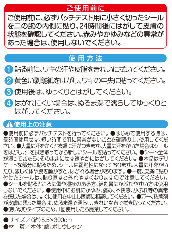 ワキに直接貼る 消臭汗取りシ−ト ロールタイプ 脇汗パッド 汗脇パッド 足裏 足指 汗 ブラ汗 脇汗 対策 グッズ レディース メンズ