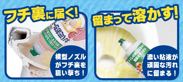 粘度のある洗浄液が尿石・黄ばみ汚れに密着します。