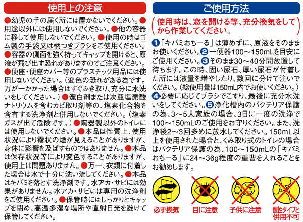 ※適さないもの:ゴム栓式の簡易トイレ、大理石、合成樹脂加工品、ホウロウ引き製品、鉄、ステンレス等の金属製品、プラスチック製品(変色の恐れがあります。)