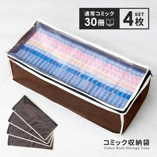 コミック収納袋 4枚組 【かさばる漫画の収納に!! 約25〜30冊の コミック が収納できる コミック収納ケース / マンガ収納袋】