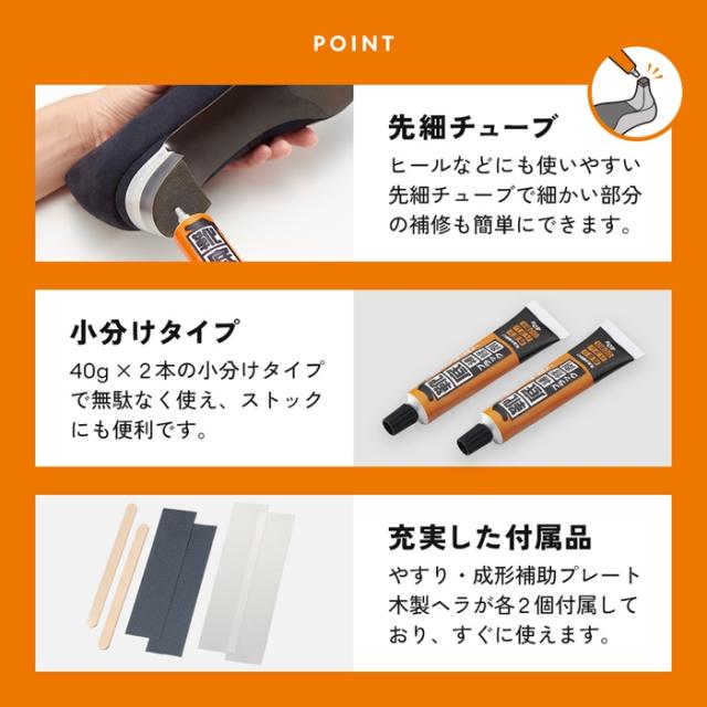 靴底補修剤 40×2本 黒 ブラック【メール便なら送料無料】かかとのすり減りやひび割れに!! 革靴・ハイヒール・ブーツなど 靴の修理ができる
