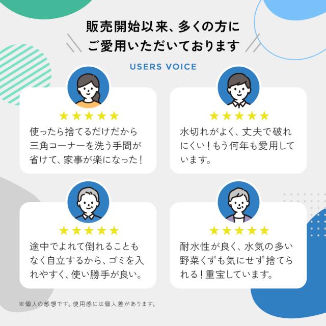 1枚ずつサッと持ち運びできるので、キャンプやアウトトドアでも大活躍する人気の使い捨て水切り袋です。