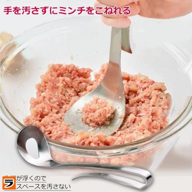 【定形外出荷】レイエ ミートこねらー 手を汚さずに ひき肉を こねる 混ぜる すくうをこれ1本で スプーン マッシャー 【日本製】