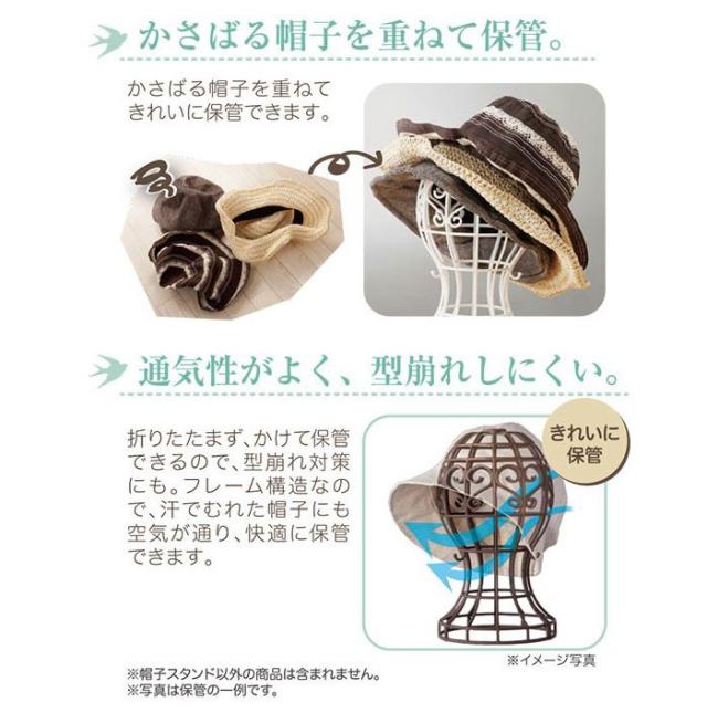 型崩れしやすく、かさばりがちな帽子をインテリアとして見せながらキレイに保管ができます。