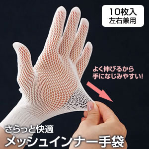 さらっと快適 メッシュインナー手袋 10枚入 左右兼用 ゴム手袋の中にする手袋 アンダー手袋 手荒れ対策 ハンドケア