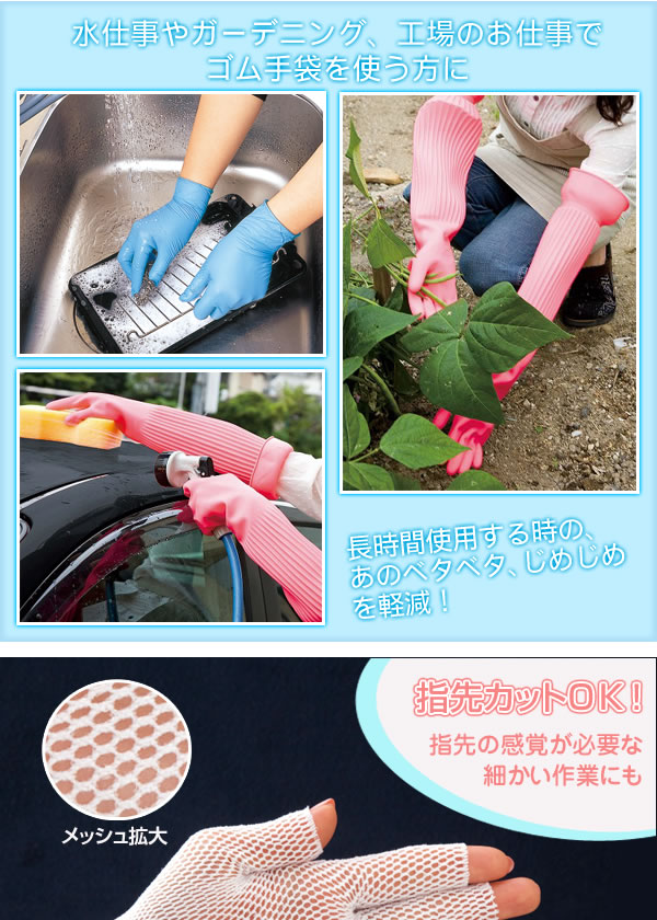 水仕事やガーデニング、工場のお仕事でゴム手袋を使う方におすすめのアンダー手袋です。
