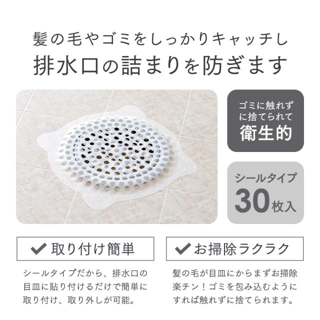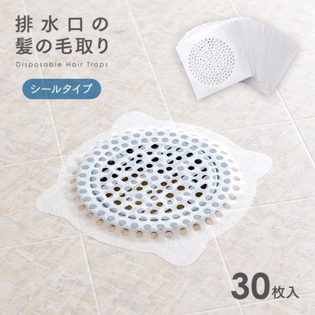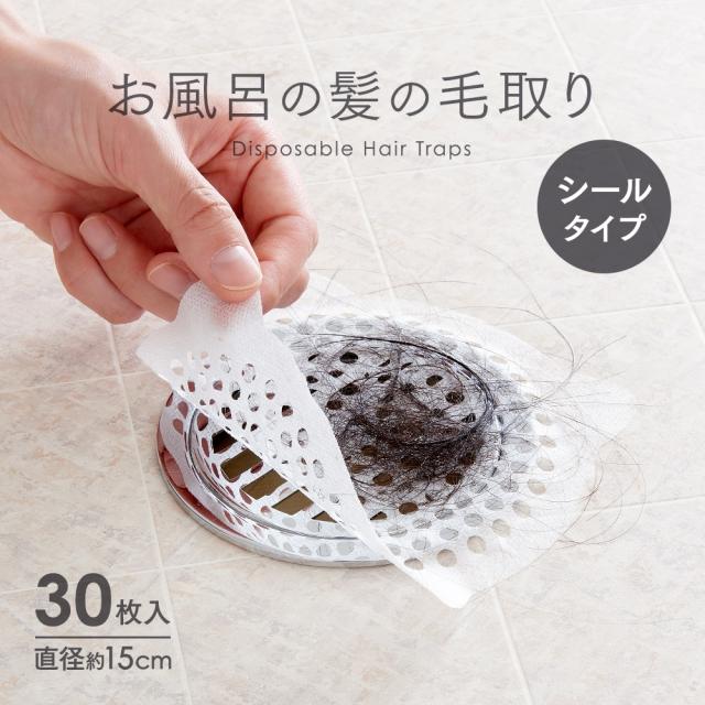 【送料無料★メール便出荷】お風呂の髪の毛とりシールタイプ 30枚入(ヘアストッパー 髪の毛キャッチャー お風呂の排水溝 髪の毛とりネット)