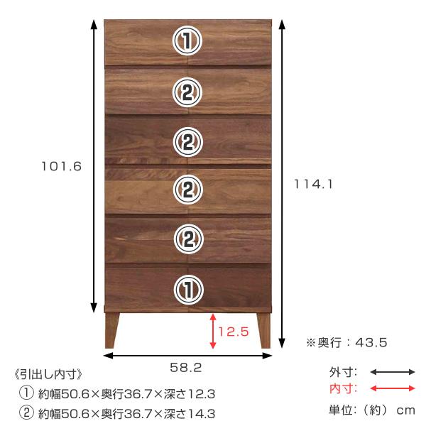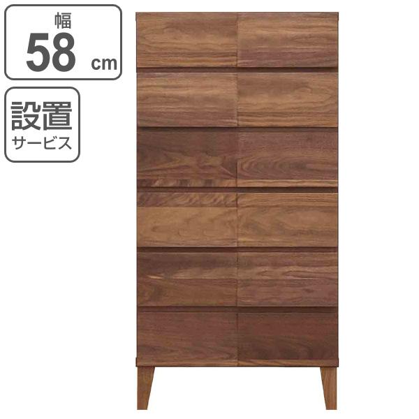 リビングチェスト 6段 モダンデザイン 天然木 日本製 幅58cm ウォールナット ( 開梱設置 チェスト 収納チェスト たんす タンス 収納 引き出し 完成品 国産 リビング収納 木製 木目 モダン ウォルナット 無垢材 おしゃれ ナチュラル )