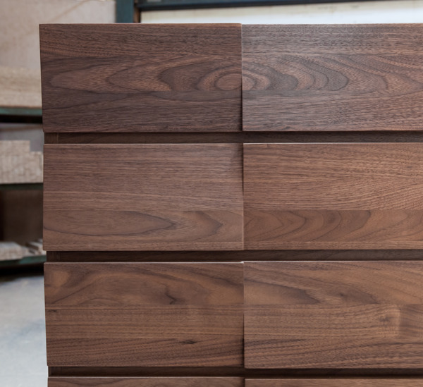 無垢材に施された斜めの削り込み加工が、モダンな印象を与えてくれます。桐材をふんだんに使用した丁寧な造りのチェストで、大切な衣類をしっかり守ってくれます。背面化粧が施されているのでどの角度から見ても美しく、間仕切りとしてもお使いいただけます。
