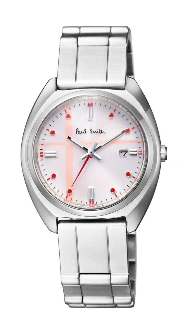 1940〜50年代の時計からインスピレーションを受けたクッションケースをベースに、シンプルな3針デイトながらポール・スミスならではの遊び心が加えられたシリーズ。
