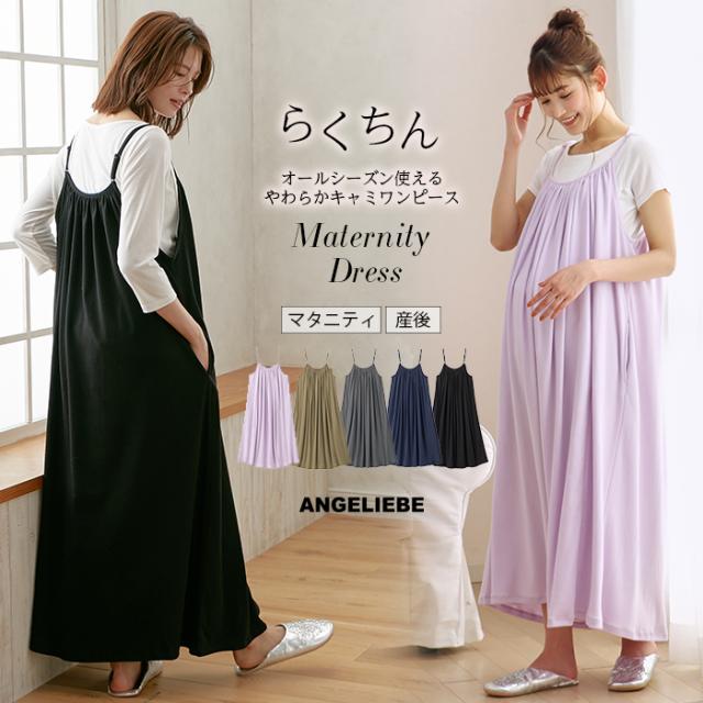 授乳服 マタニティ ワンピース オールシーズン 使えるやわらか スムース ギャザー キャミワンピース 妊婦服 キャミワンピ 部屋着 安い おしゃれ