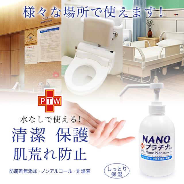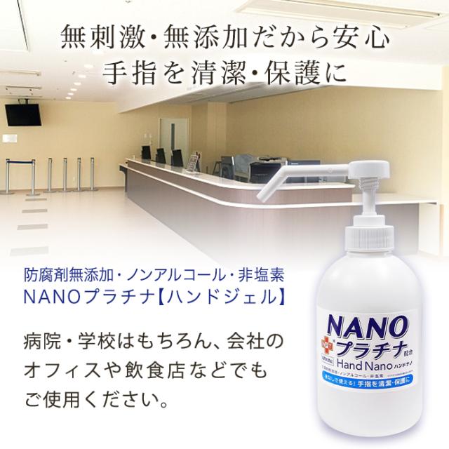 日本製 ハンドナノ 500mlジェル 手指 洗浄 清潔 衛生 保護 肌荒れを防ぐ 防腐剤無添加 優しい ハンドジェル 安心安全 マスクスプレー付 消臭 抗菌 防カビ 除菌 NANOプラチナ Hand Nano 保湿 ノンアルコール 非塩素 ポンプ プラチナ ナノ 送料無料
