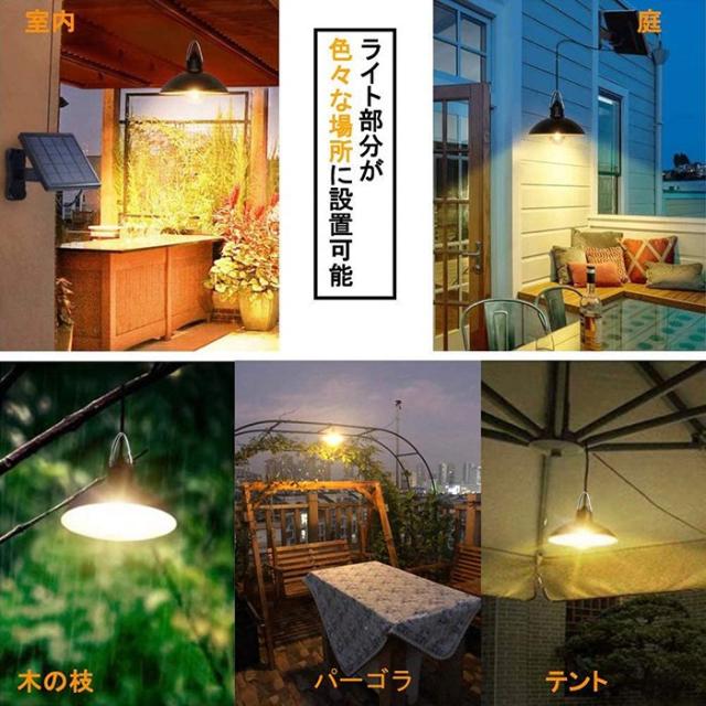 ソーラーパネル部分とライト部分が分けているので、ソーラーパネルは日当たりの場所に設置して、ライトは屋内でも点灯できます。一体型に比べて、設置場所が幅広くなります。リモコンが付いて、使わない際に電源消しができます。