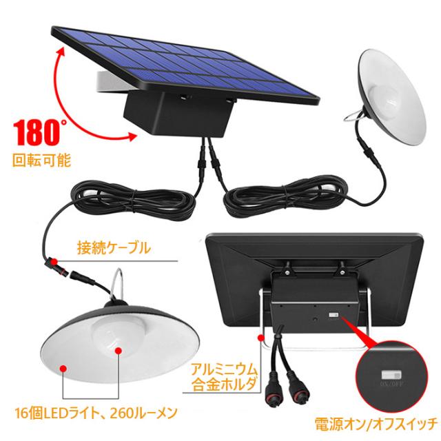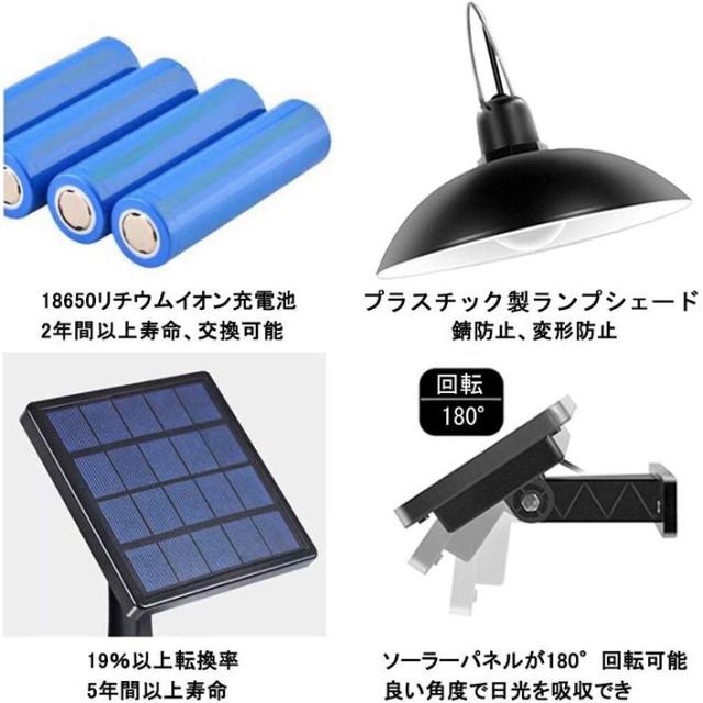 自然の太陽光発電なので、昼間にソーラーエネルギで自動的に蓄電します、商品に内蔵している大容量リチウムイオン充電バッテリーがあって、晴天一日間蓄電すれば連続で6〜10時間点灯できます。