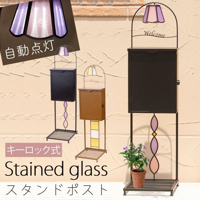 ポスト スタンド セット 置き型 スタンドセット キーロック 北欧 アンティーク スタンドポスト 置き型 自立式 おしゃれ スタンドポスト ステンドグラス メーカー直送