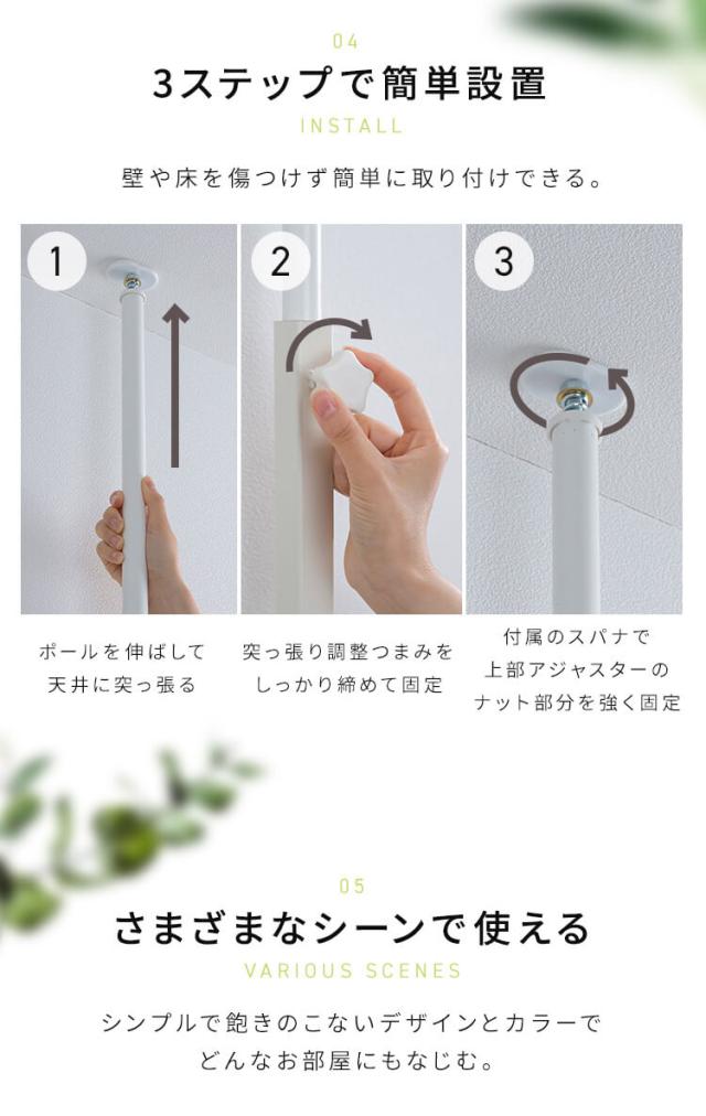 1.ポールを伸ばして天井に突っ張る