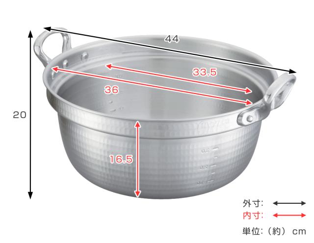 打出料理鍋 36cm ガス火専用 メモリ付き 中尾アルミ 業務用 日本製 13L ( ガス火 両手なべ 両手鍋 調理鍋 アルミ製 36センチ アルミ製鍋 鍋 なべ 調理器具 大容量 厨房用品 厨房 )