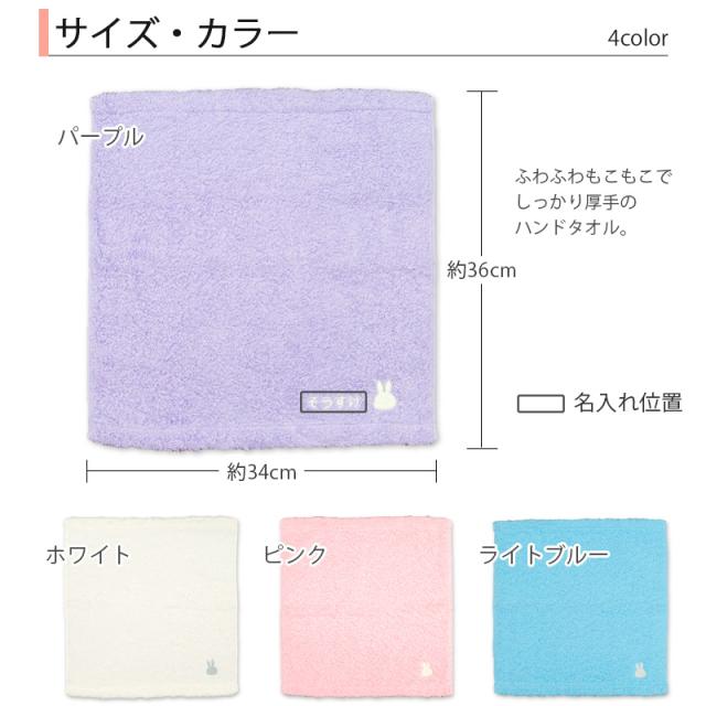 ◆名入れ刺繍無料。ミッフィーのワンポイントをあしらった安心の今治製のハンドタオルです。
