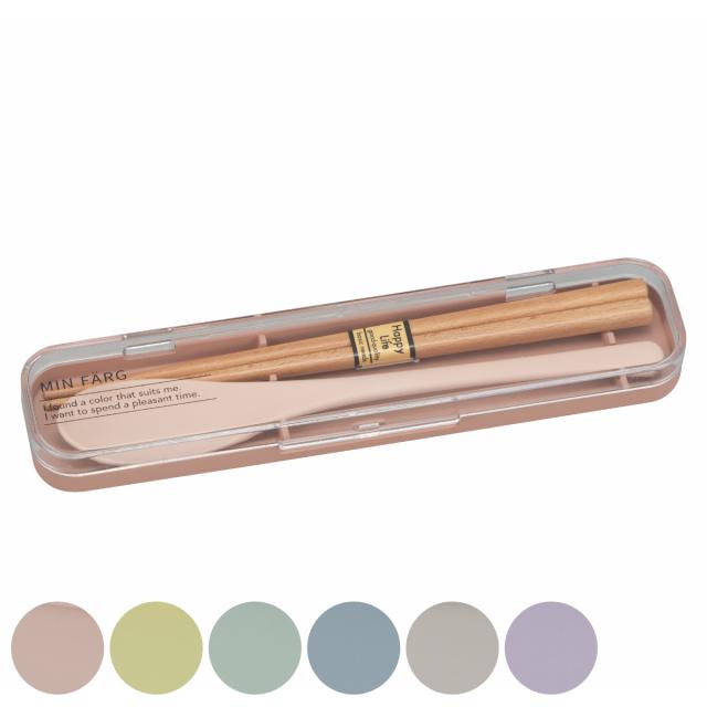 コンビセット 抗菌 箸 スプーン MIN FARG カトラリーセット ( お箸 スプーンセット 18センチ 抗菌加工 カトラリー 天然木 日本製 はし 箸&スプーン ケース付き お弁当用 木製 箸箱 持ち運び 携帯用カトラリー 携帯用 )