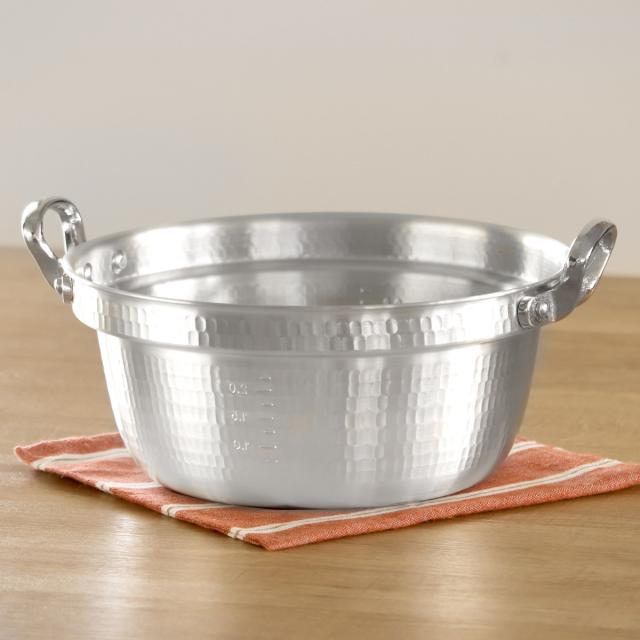 打出料理鍋 27cm ガス火専用 メモリ付き 中尾アルミ 日本製 5.6L ( ガス火 両手なべ 両手鍋 調理鍋 アルミ製 27センチ アルミ製鍋 鍋 なべ 打出し 打出し加工 調理器具 厨房用品 厨房 )