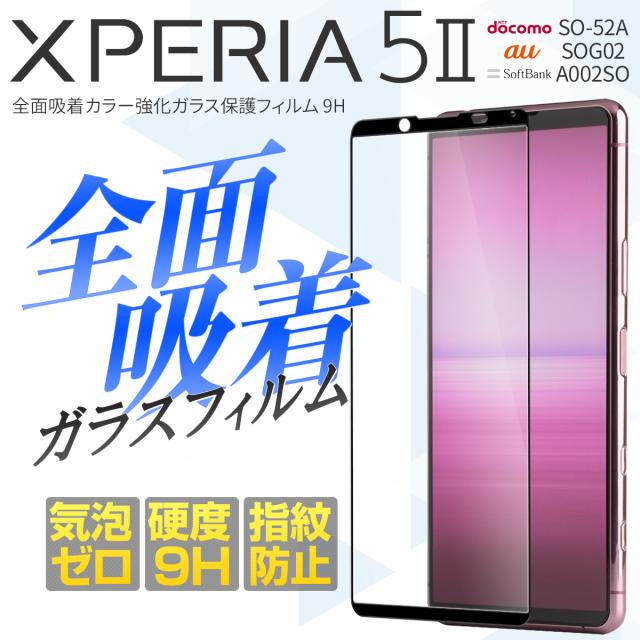 Xperia 5 II ガラスフィルム レンズ ガラス フィルム スマホガラス スマホシート 強化ガラス 全着 液晶保護 保護ガラス 保護フィルム SO-52A SOG02 A002SO 全面吸着カラー強化ガラス保護フィルム 9H