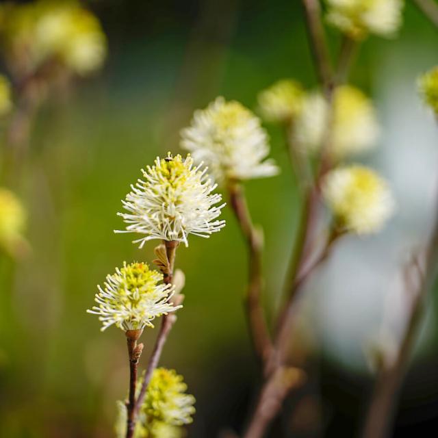 春には白い丸っこいブラシ状の花がたくさん咲きます。