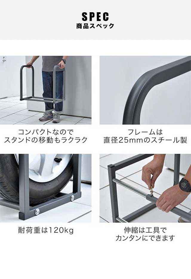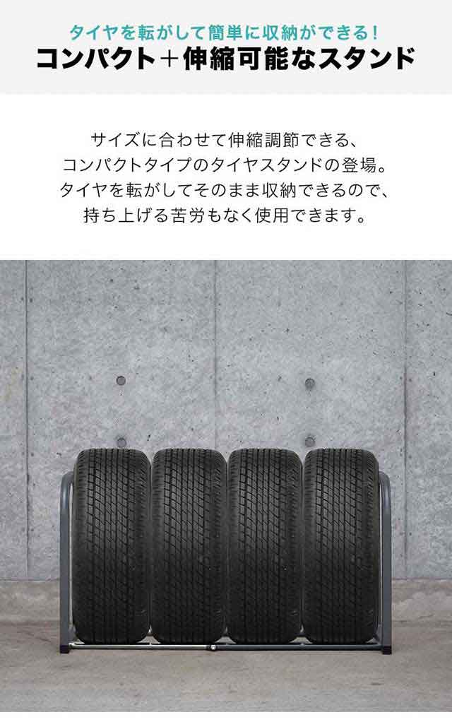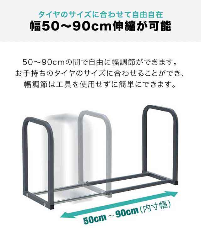 タイヤラック 4本収納 伸縮式 50cm〜90cm 据置式 床置き 縦置き 低床 サイズ調整 収納 タイヤスタンド タイヤ収納ラック タイヤ収納 タイヤ保管 夏用 冬用 スタッドレスタイヤ 保管 ガレージ 物置 選べるタイヤカバー付セットも 送料無料