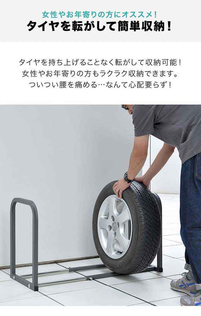 - 2段ラックを買ってつかってましたが、安定感にふあんがあって、この商品にたどり着きました。安心だし、タイヤごとにカバーつけて、その上に雨よけカバーかけて使ってます。屋外保管は、地震台風考えると、このタイ...