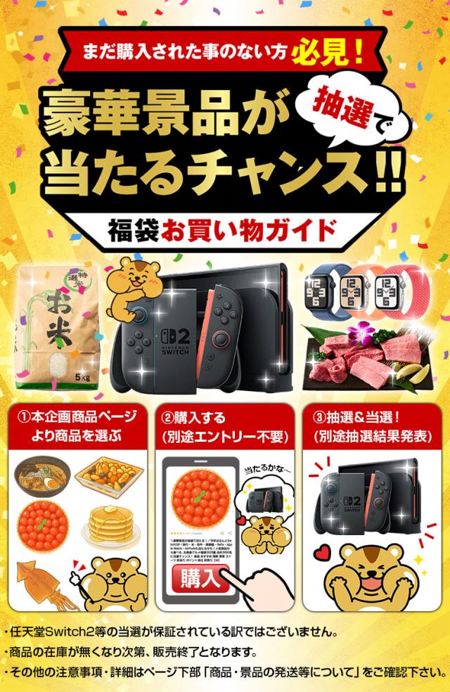 【先着クーポンで⇒2,250円!】\豪華景品が抽選で当たる!/今年はなんとSwitch2が!旅行・米・和牛・ReFa・Dyson・Apple Watch・AirPodsも当たるかも!人気商品から選べる .北海道グルメ福袋2026. 【M】 合計6000名に当選チャンス! 食品 備蓄米 海鮮 惣菜 スイーツ