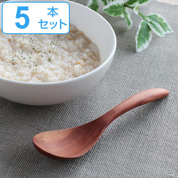 リゾットスプーン WOODN 16cm スプーン 天然木 木製 同色5本セット ( れんげ レンゲ カトラリー 洋食器 サオ 木製食器 サーバースプーン 木 おしゃれ かわいい カフェ風 サオの木 )