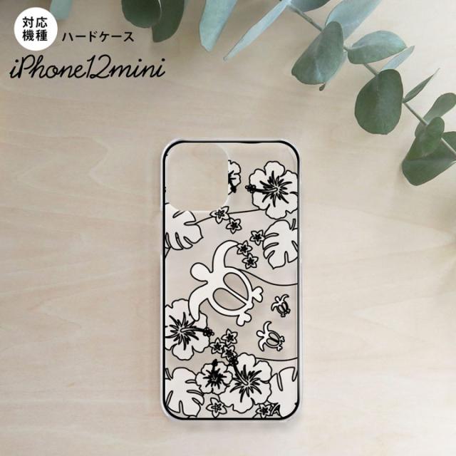 iPhone12mini iPhone12 mini 5.4 背面ケース カバー ステンドグラス風 おしゃれ ホヌとハイビスカス ホワイト ステンドグラス風