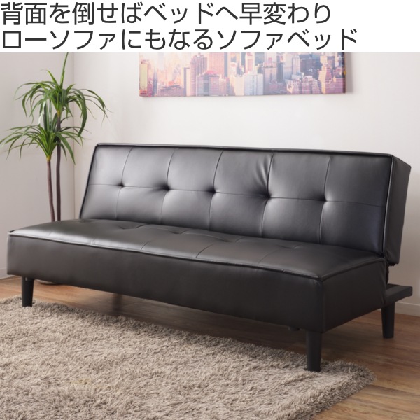 ソファベッド 幅183cm レザー調 3人掛け 三人掛け ソファ ( 開梱設置 ソファー ベッド ベット レザー風 ローソファ お手入れ簡単 アームレス ソファーベット )