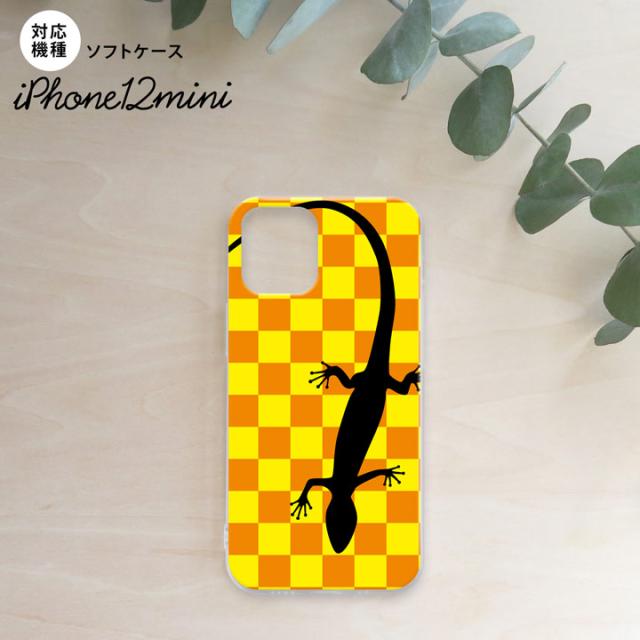 iPhone12mini iPhone12 mini 5.4 スマホケース ソフトケース トカゲ 市松 黄