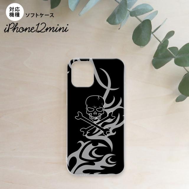 iPhone12mini iPhone12 mini 5.4 スマホケース ソフトケース ドクロ 黒 グレー