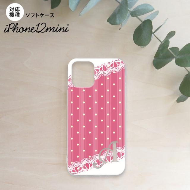 iPhone12mini iPhone12 mini 5.4 スマホケース ソフトケース ドット レース C ピンク +アルファベット