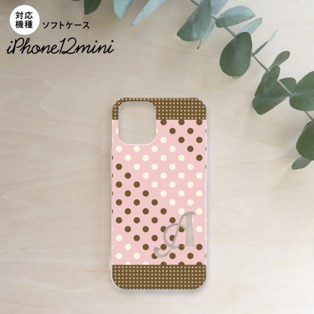 iPhone12mini iPhone12 mini 5.4 スマホケース ソフトケース ドット 水玉 C 薄ピンク 茶 +アルファベット メンズ レディース nk-i12m-tp1642i