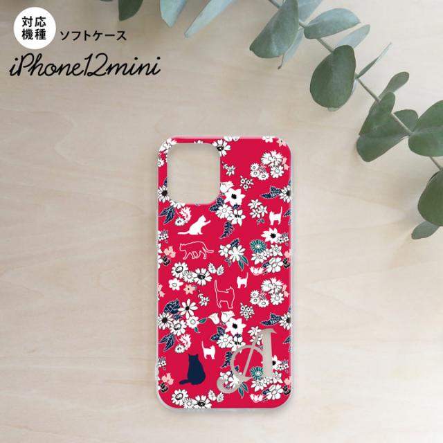iPhone12mini iPhone12 mini 5.4 スマホケース ソフトケース 猫 花 赤 +アルファベット