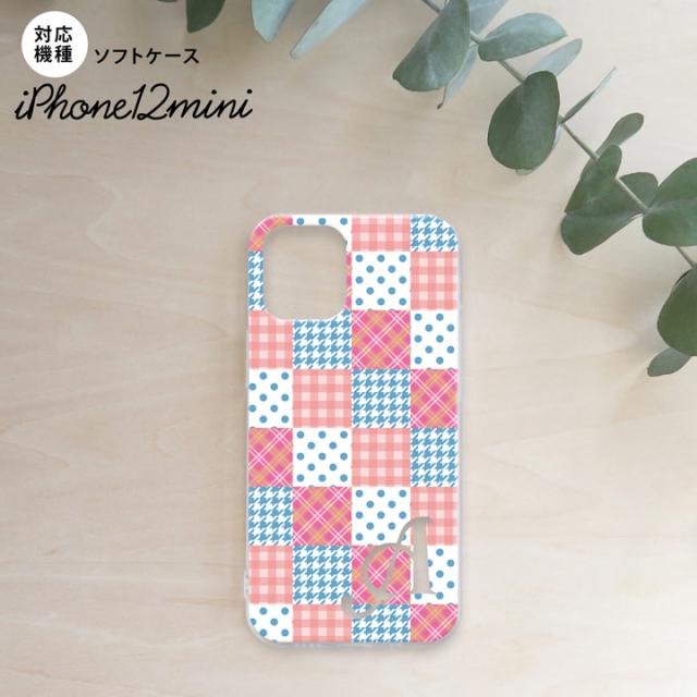 iPhone12mini iPhone12 mini 5.4 スマホケース ソフトケース パッチワーク ピンク 水色 +アルファベット