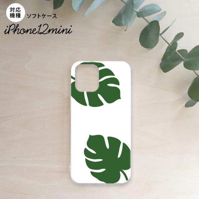 iPhone12mini iPhone12 mini 5.4 スマホケース ソフトケース モンステラ 白 緑