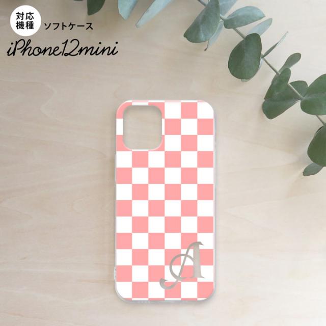 iPhone12mini iPhone12 mini 5.4 スマホケース ソフトケース スクエア 白 ピンク +アルファベット