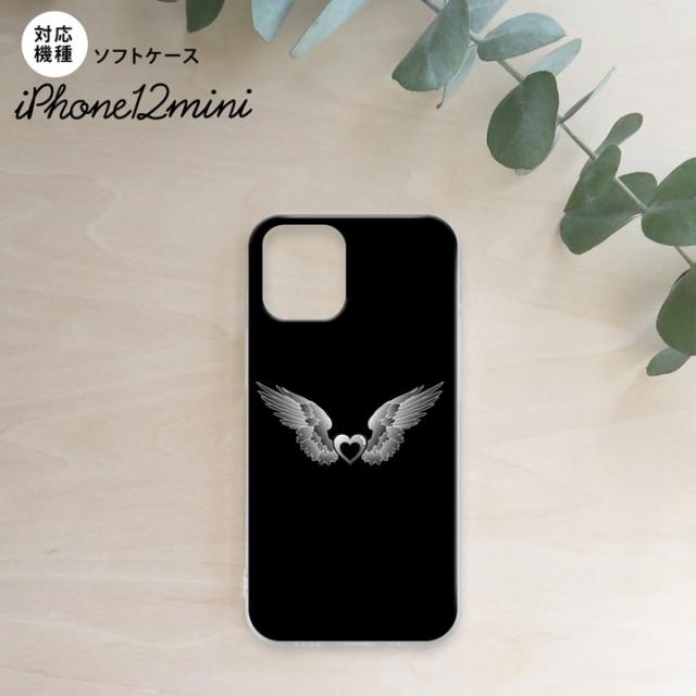 iPhone12mini iPhone12 mini 5.4 スマホケース ソフトケース 黒翼 ハート 黒 グレー メンズ レディース nk-i12m-tp468