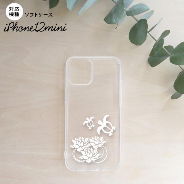 iPhone12mini iPhone12 mini 5.4 スマホケース ソフトケース 蓮と亀 クリア 白