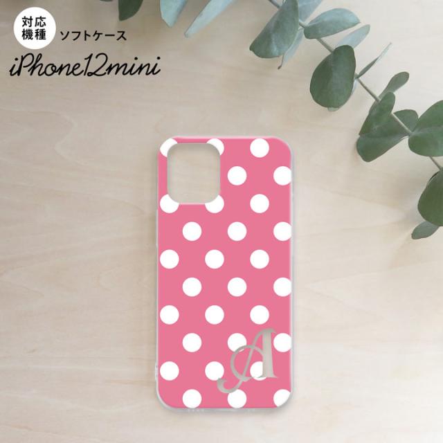 iPhone12mini iPhone12 mini 5.4 スマホケース ソフトケース ドット 水玉 B ピンク 白 +アルファベット