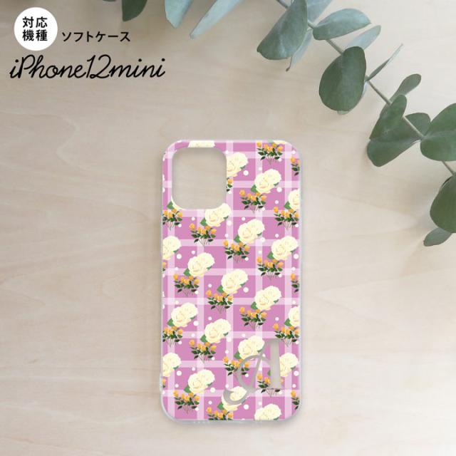 iPhone12mini iPhone12 mini 5.4 スマホケース ソフトケース 花柄 バラ チェック ピンク +アルファベット