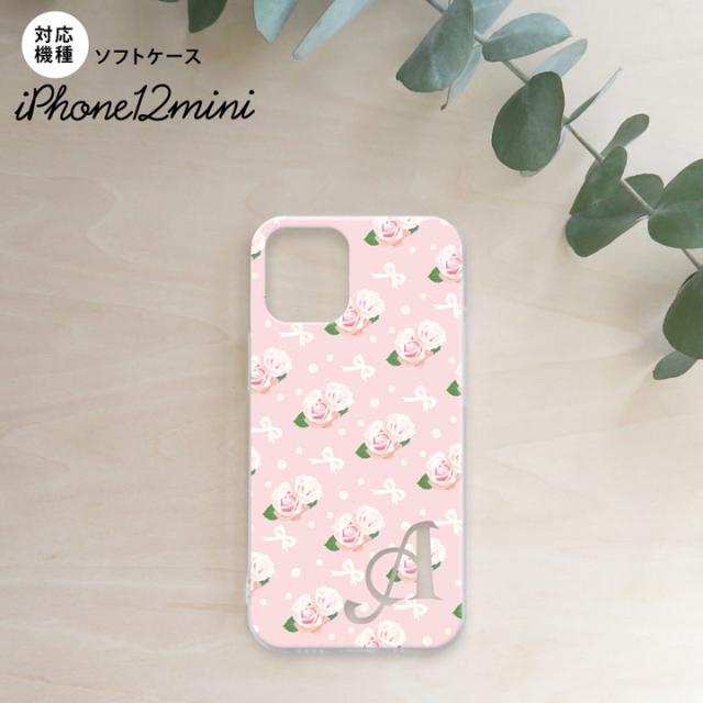 iPhone12mini iPhone12 mini 5.4 スマホケース ソフトケース 花柄 バラ リボン ピンク +アルファベット